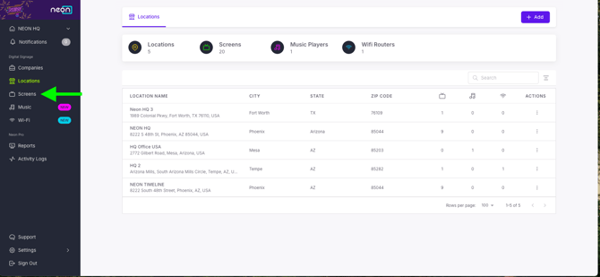 Select Screens from the left navigation menu