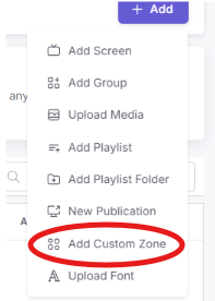 Select Add Custom Zone from the dropdown menu.