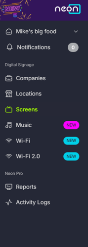 Log in to the dashboard at https://admin.neonscreens.com/login/.