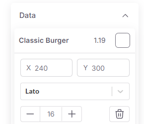 You can also edit Font, text size, and color with the tools on the right side of the screen while a price box is selected.