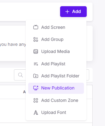 Click on the New Publication selection under the +Add button in the main menu.